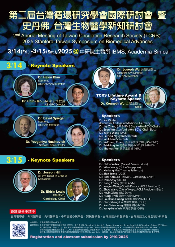 【活動訊息】第二屆台灣循環研究學會國際研討會暨史丹佛-台灣生物醫學新知研討會